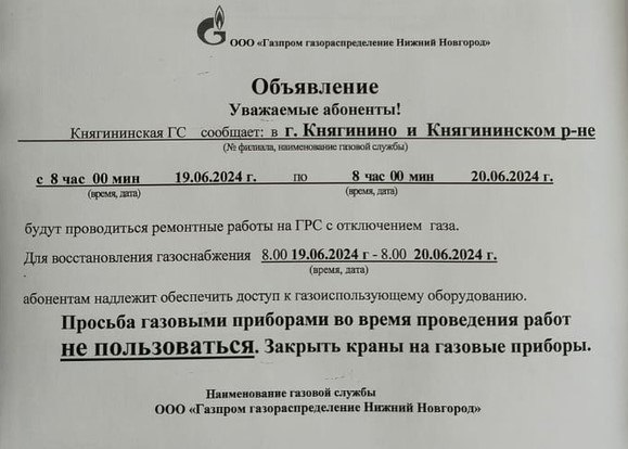 Ремонтные работы на ГРС с отключением газа!